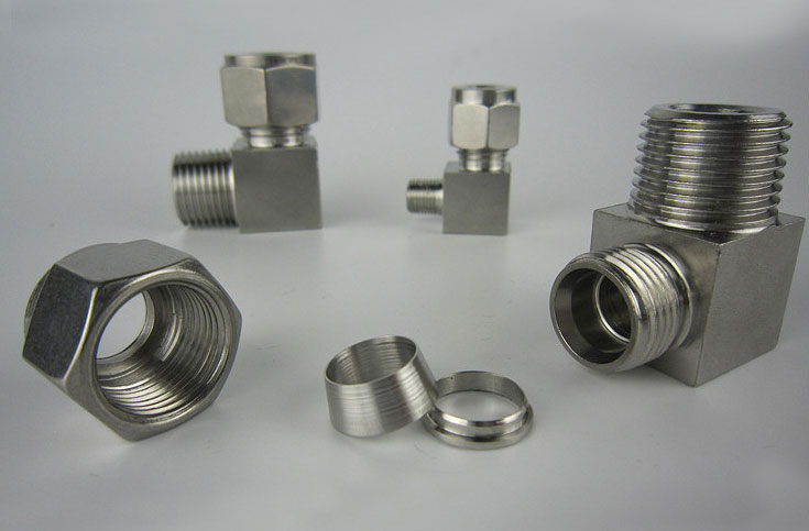 工作原理:是將鋼管插入卡套內(nèi),利用卡套螺母鎖緊,抵觸卡套,切入管子而密封。